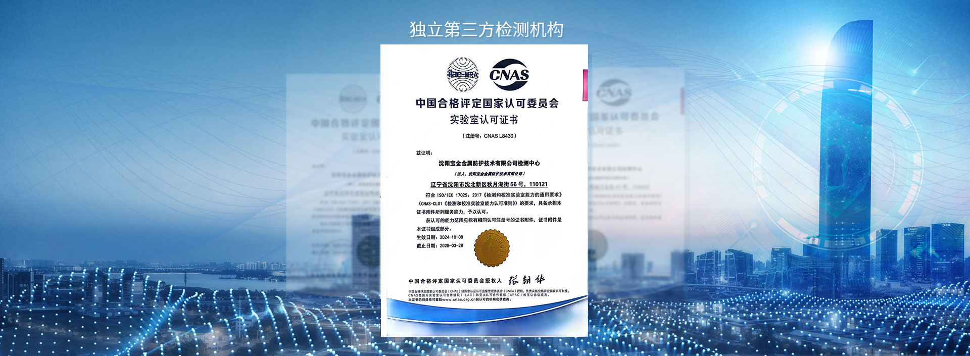 沈陽寶金金屬防護技術有限公司成立于2011年,于2019年獲批“國家中小企業公共服務示范平臺“,主要服務于金屬防銹防護領域。依托于專業技術服務團隊,積累30余年防銹防護應用技術數據庫和業內尖端儀器設備,可為客戶提供防銹防護技術咨詢與培訓、方案設計、可行性論證、建立標準、檢驗檢測、委托管理等服務。
